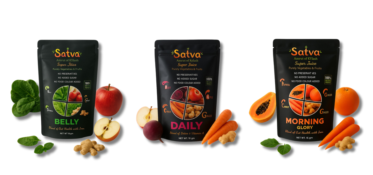 Thus, Satva Healthy Lifestyle was born. Satva means pure! Satva is committed to providing high-quality, nutrient-rich juices that are easy to consume and store. Our juices are made from fresh fruits and vegetables, freeze-dried to retain their maximum nutritional value without any additives. This ensures that everyone can enjoy the benefits of fresh juices without the hassle of preparation and cleaning.